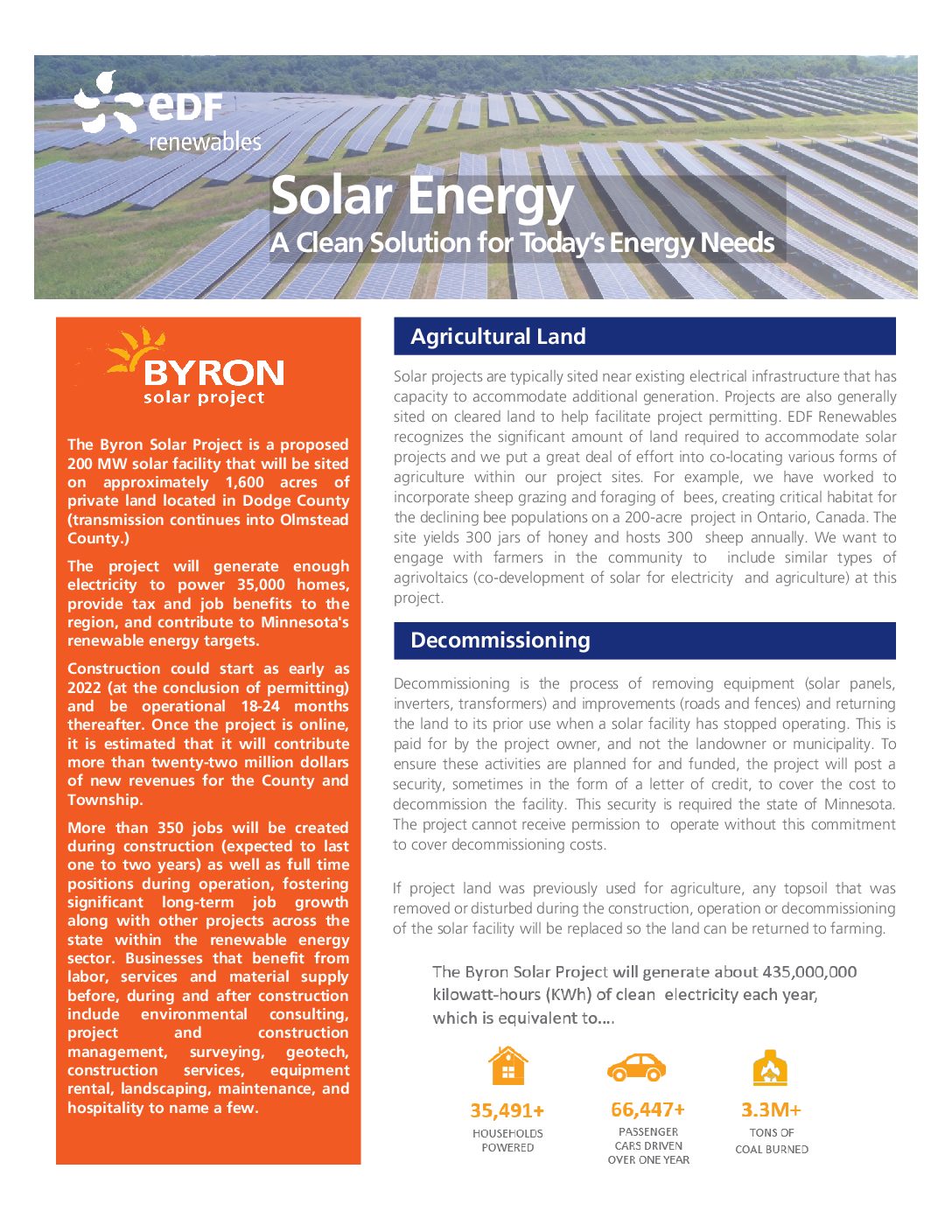 In light of the COVID 19 pandemic and best practice guidance, we have adapted how we communicate with you about the Byron Solar Power Project (the Project). While we are unable to meet in-person, we remain committed to ongoing and open communications with you to address any concerns and questions you may have.